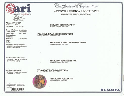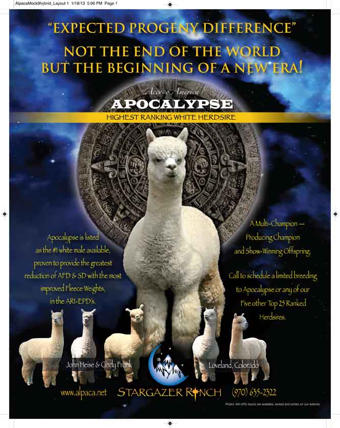 Apocalypse Has sired more top 100 herdsires listed in the AOA-EPD program for improving fineness and increasing fleece weight.